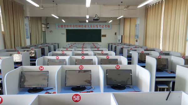 我校是安徽省甲类安全培训资质机构,是蚌埠市安全资格考试在线考试考点,承担培训电工、焊工等特种作业人员及企业负责人和安全管理干部的任务,近年来年培训规模近2000人次。为适应国家安全生产培训的新要求,学校作出了新建培训考试基地的决定,在校领导的重视和关怀指导下,在人社部门的大力支持下,新基地得以在蚌埠市人力资源产业园考试中心落户。经过校领导充分沟通协调,总务处、成教处共同努力,克服了暑期高温炎热困难,加紧推进新基地建设,于近日建成并投入使用。
