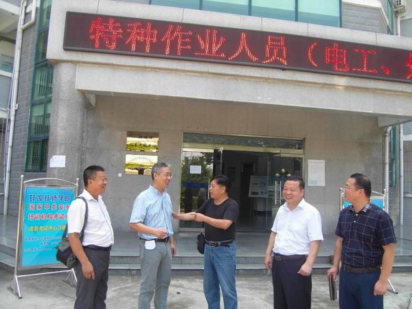 近日,蚌埠职教中心(蚌埠技师学院)安全培训考核新基地已正式投入使用。7月21日上午,校领导陈元高、郝登峰、宋晓宾等一行兴致勃勃地前往新建成的安全培训考核基地视察,成教处陈佩喜处长陪同并向校领导介绍了新基地的功能布局。新基地的设施设备完善,在我市省级甲类安全培训资质机构中条件一流,完全满足蚌埠市安全培训和资格在线考试需要,校领导对基地建设情况表示满意。