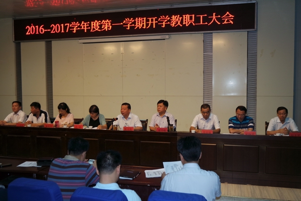 8月22日上午,蚌埠职教中心(蚌埠技师学院)2016—2017学年度第一学期全体教职工大会如期举行,会议的主题是全面部署新学期工作,校领导陈元高、郝登峰、卢嘉砾、宋晓宾、包太平、陈劲松出席会议,郝登峰书记主持会议,局属学校责任督学孔琪、魏曼玲应邀到会。
