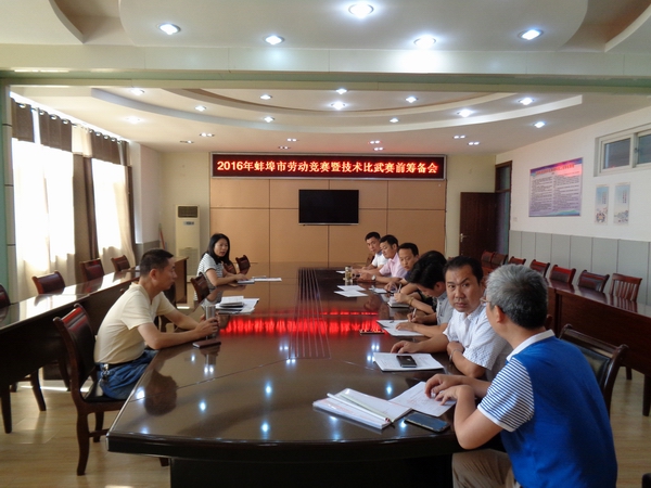 2016年8月31日上午,在学校综合楼十楼会议室,由教务处牵头召开蚌埠市劳动技能竞赛暨技术系列比武第一次筹备会。会议由教务处长史毓勇主持,机械工程系、机电工程系领导及项目负责人参会。