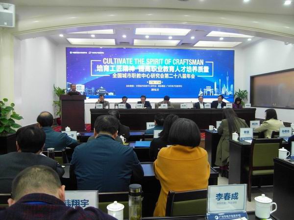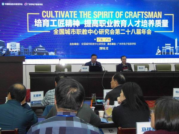 本届年会的主题是:培育工匠精神,提高职业教育人才培养质量。年会上,谢俐作了贯彻习近平总书记教育思想、加快发展现代职业教育的主旨演讲,中国职业教育学会德育工作委员会副主任汪永智教授作了加强德育品牌建设的报告,广州市电子信息学校校长陈黎靖介绍了学校办学经验。年会围绕“如何培育工匠精神”的主题,安排了“校长论坛”,陈元高校长作了题为《现代职业教育学校应具备能力的思考》的发言,提出了自己独到的发展思路,与参会者进行了分享。六名校长相继发言,畅谈办学经验和管理心得,学术气氛浓郁。年会还安排参观了广州市电子信息学校信息技术、汽车电子技术特色专业建设,以及校园文化艺术展演和社团活动,参观了广州市电子信息学校校企合作企业—广州海格通信集团公司海格北斗产业园区。