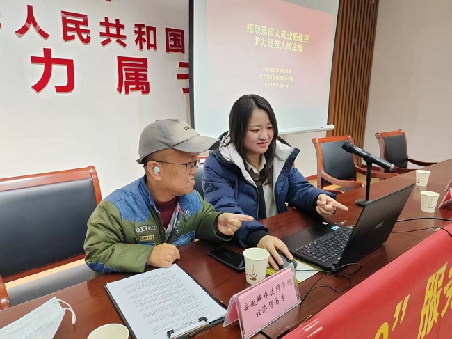 “原来手机也能搭专业直播间,领夹麦离嘴15厘米就不会有喷麦声!”2025年12月16日下午,在蚌埠市龙子湖区延安街道办事处会议室里,刚结束直播技能培训的残疾人学员拿着笔记,难掩激动之情。当天,蚌埠技师学院与龙子湖区延安街道办事处联合举办“拓展残疾人就业新途径,助力残疾人做主播”残疾人直播就业专题培训,依托人社部门就业扶持政策与街道“386199”关爱服务体系,为残疾人群体搭建起通往数字经济的“就业桥梁”。