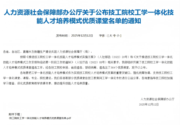 此次入选是对我院机械工程系专业教学改革成效的充分肯定,标志着我院在技能人才培养模式创新领域取得重要进展。学院将以此为契机,持续深化工学一体化教学改革,不断提升技能人才培养质量与水平。(撰稿:王康 审稿:崔建国)