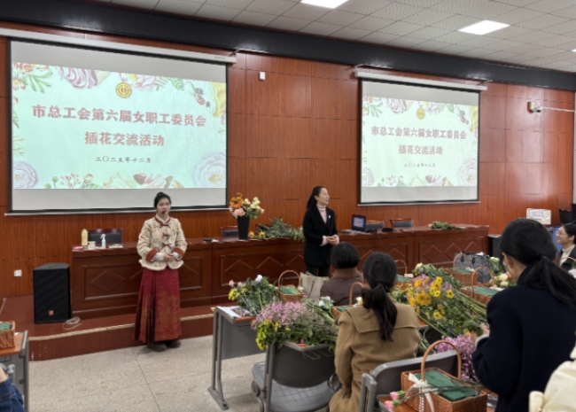 2025年12月30日,蚌埠市总工会第六届女职工委员会插花交流活动成功举办。本次活动由市总工会组织,蚌埠技师学院承办,公共服务系吴佳妮担任主讲老师。