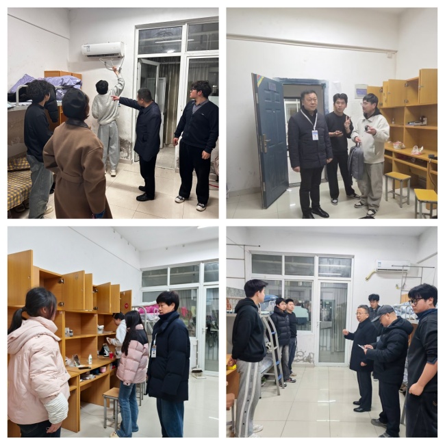 学院党委书记朱冬民、院长陈华坤带领学院领导班子深入学生宿舍,与同学们进行了亲切交流,实地了解大家返校后的学习生活状态与适应情况。每到一处,老师们都送上诚挚的新学期问候并仔细查看宿舍有无违禁品及设施状况。