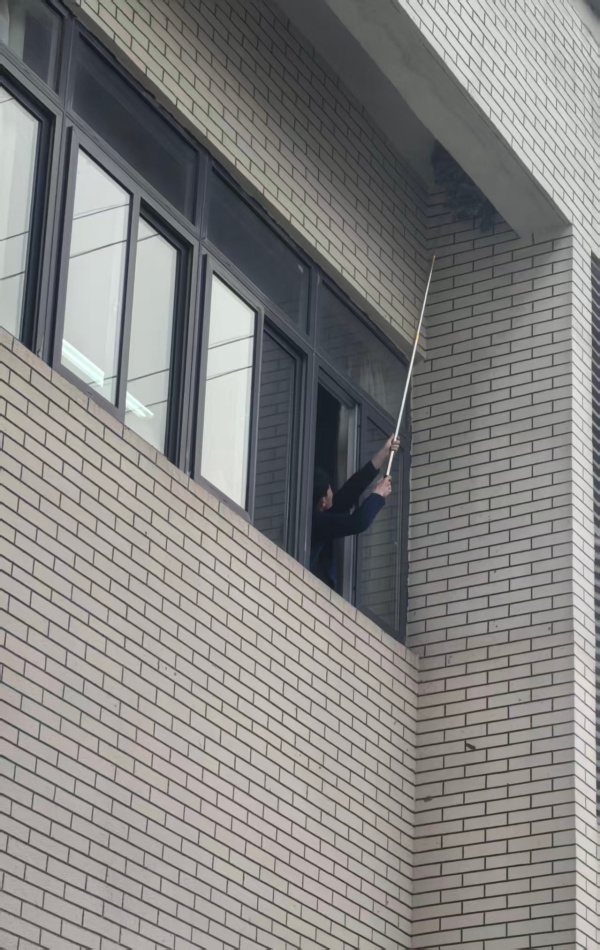 发现隐患后,保卫处立即启动安全应急预案,及时提醒附近教室师生远离隐患区域,同时第一时间对接消防救援部门请求专业支援。消防人员抵达后,经现场勘察制定处置方案并完成蜂窝摘除与全域消杀,在校消双方密切配合下,隐患被彻底根除。
